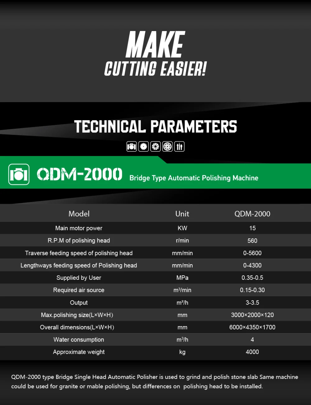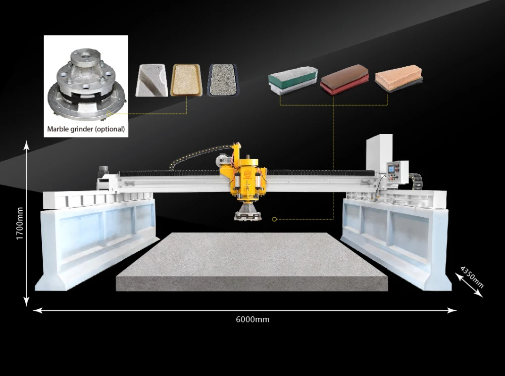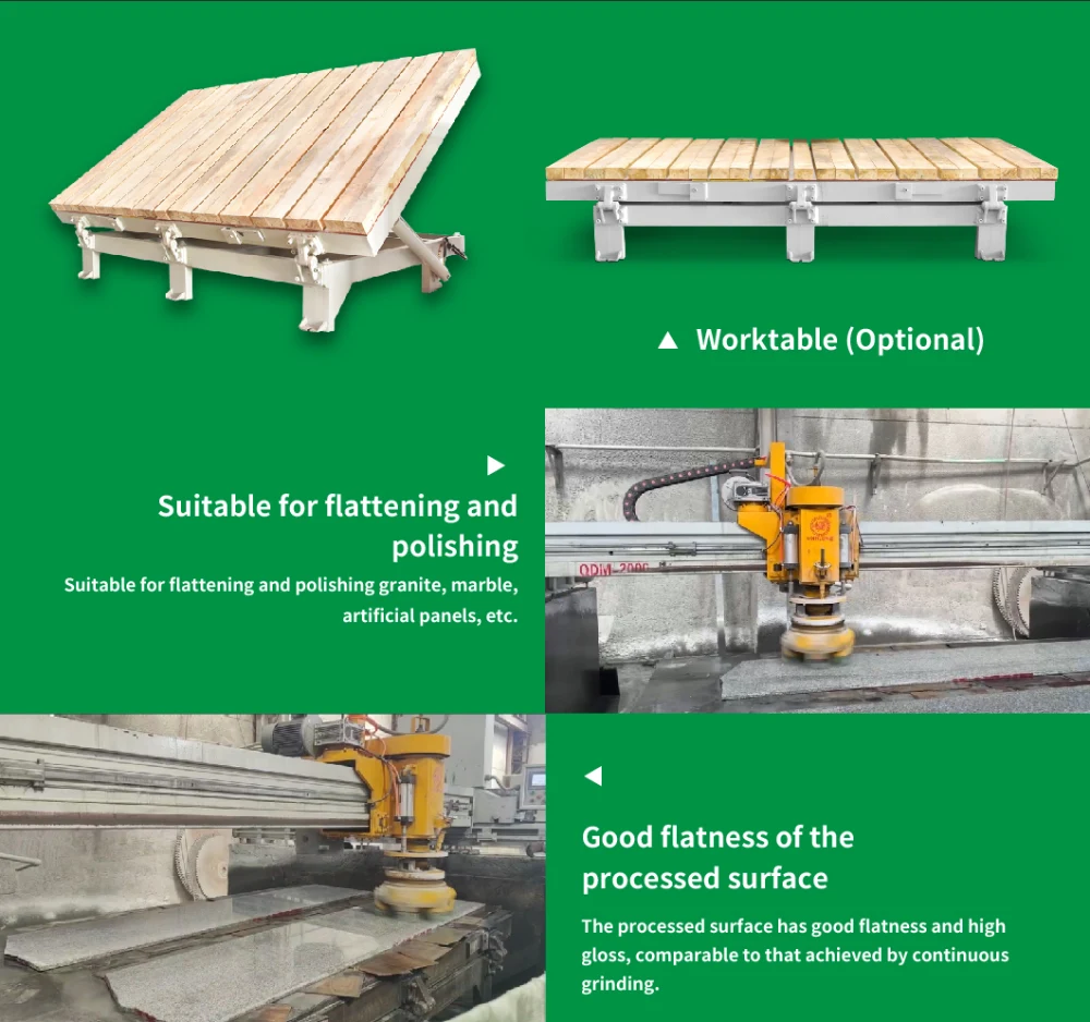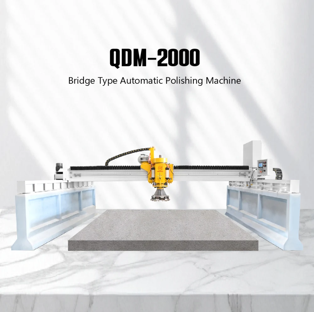 QDM-2000 type Bridge Single Head Automatic Polisher is used to grind and polish stone slab Same machine could be used for granite or mable polishing, but differences on polishing head to be installed